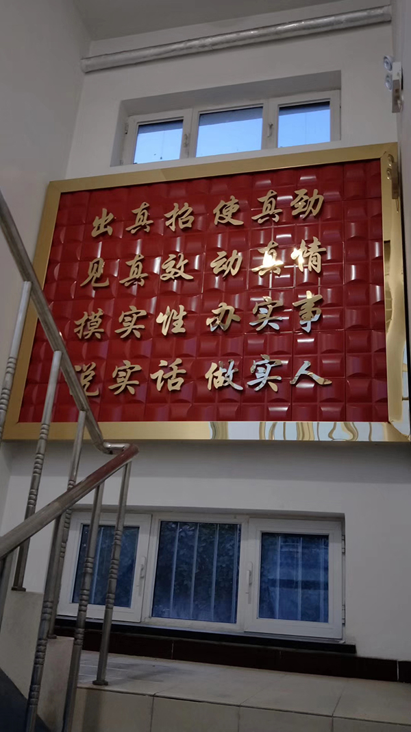 材質(zhì):不銹鋼鏡面字,后背板方管框架、鋁扣板、不銹鋼包邊。